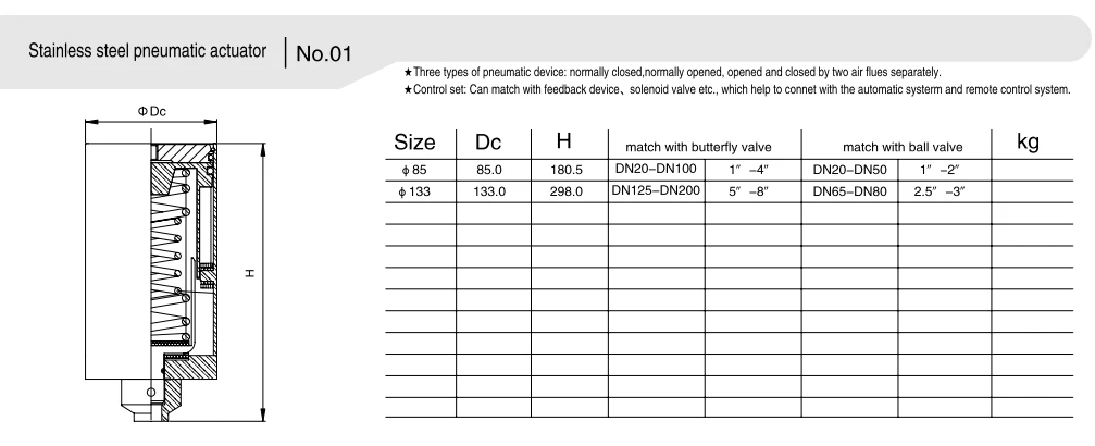 - Penggerak bertindak tunggal: Dilengkapi dengan fungsi set semula spring, ia secara automatik kembali ke kedudukan asalnya apabila bekalan udara rosak, menawarkan perlindungan keselamatan yang tinggi dan sesuai untuk senario dengan keperluan keselamatan yang tinggi.